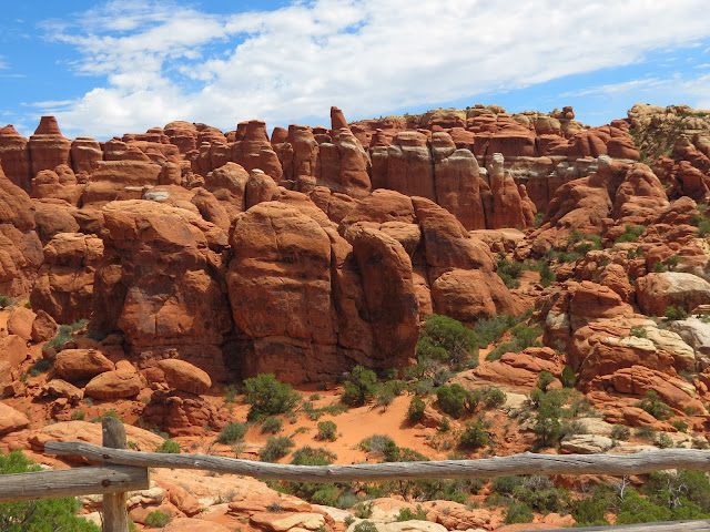 There are many more trails and arch's I did not take because they were to long or the places were to hard to get to but I would like to share a few more photographs of some of these places. The Devil's Garden Trail Head is located off the main road running through Arch's National Park and at the parking area for the trail there were more cars parked there than at any other place I stopped. This trail travels throughout Devils Garden and is just over 7 miles long. It goes by the Tunnel Arch, Pine tree Arch, Landscape Arch, Partition Arch, Navajo Arch, Double O Arch, Dark Angel Monolith, Private Arch and Fin Canyon.