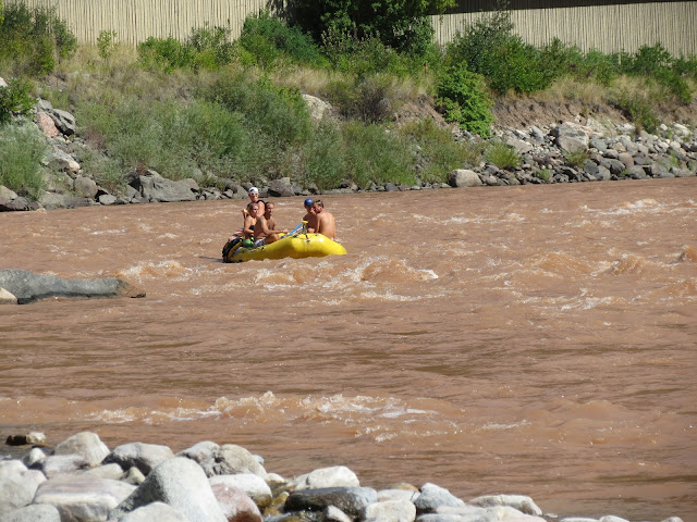 Tour Guide Controls Rubber Boat With Rafters As They Pass By Me